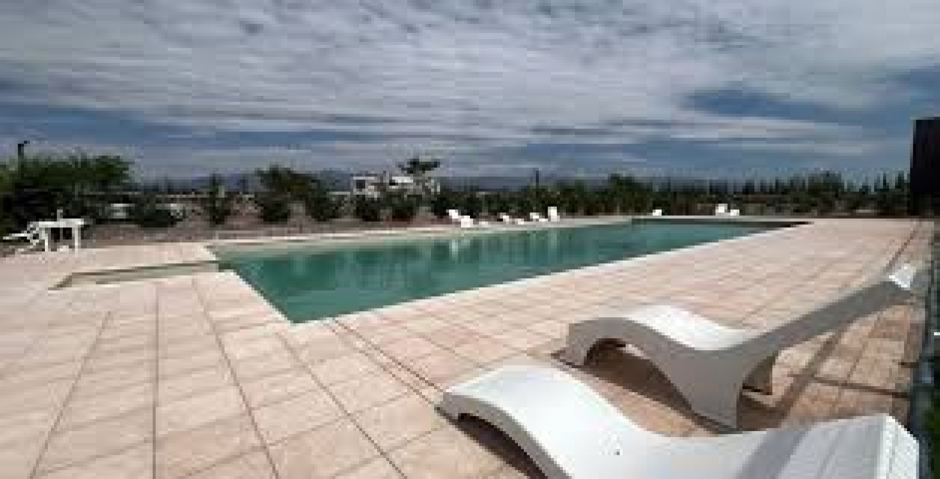 Piscina principal equipada con un amplio solárium.
